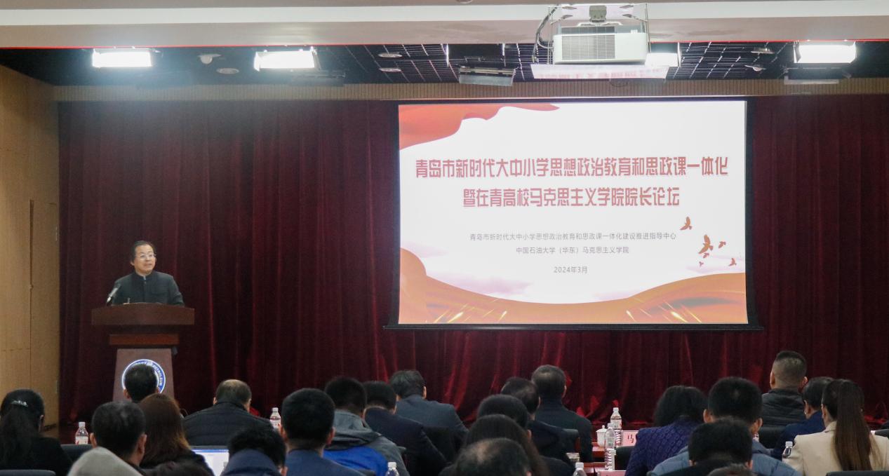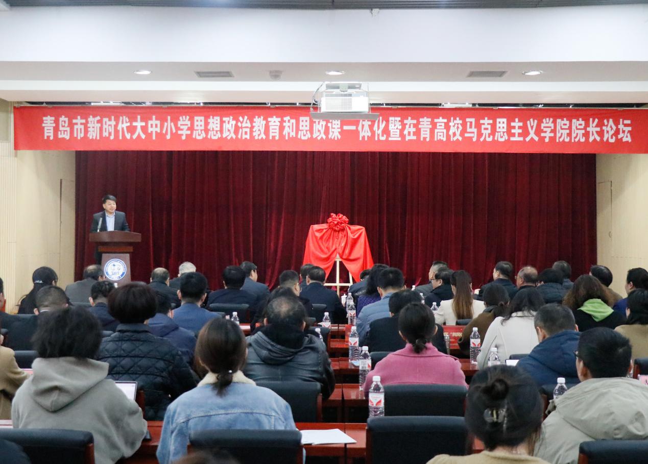 3月23日,青岛市新时代大中小学思想政治教育和思政课一体化暨在青高校350vip8888新葡的京集团院长论坛在350vip8888新葡的京集团(华东)唐岛湾校区逸夫报告厅隆重举行。学校党委副书记马国顺、青岛市教育局总督学李晓元出席开幕式并讲话,共同为“青岛市新时代大中小学思想政治教育和思政课一体化建设推进指导中心”(以下简称“指导中心”)揭牌。揭牌仪式由学院党委书记司江伟主持,“指导中心”领导成员,以及全市各大中小学思政课一体化建设共同体单位负责人、高校350vip8888新葡的京集团院长等200余名师生参加仪式。